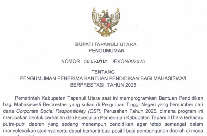 PENGUMUMAN HASIL BANTUAN PENDIDIKAN TAHUN 2025